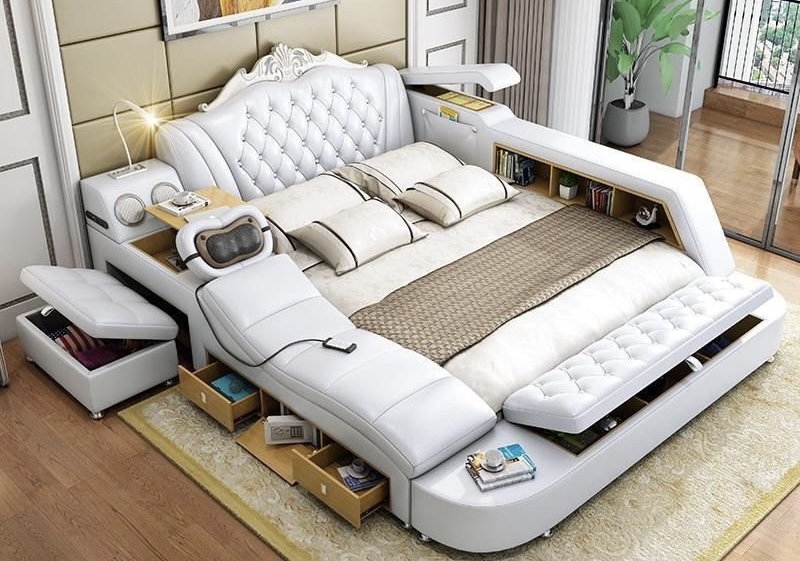 Let’s break it down. This isn’t just a bed—it’s your personal spa, reading nook, smart lounge, and storage solution rolled into one plush, elegant frame.
